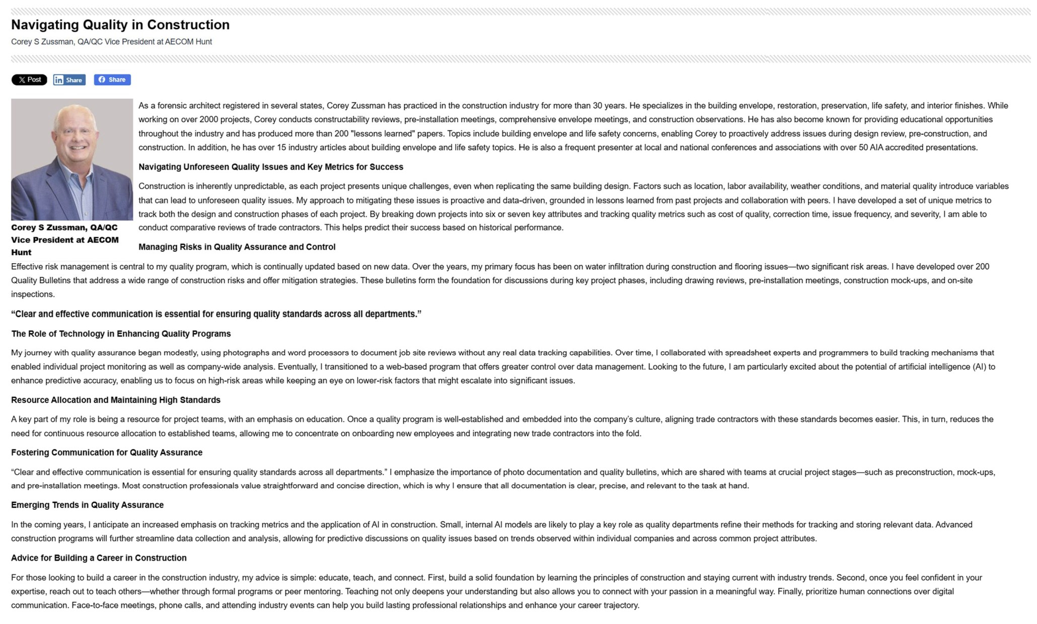Navigating Quality in Construction