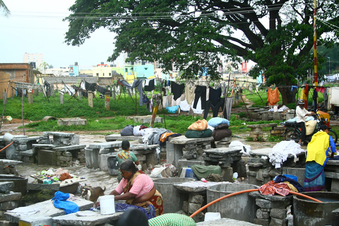 We saw the Sikh temple where no god is worshiped but everyday hundreds of people are fed, and if you need somewhere to stay, they always have room. We also visited a dobhi ghat (pictured below) â a huge expanse of lines, large chunks of granite, and a complex network of pipes and tanks, which together acts as the clothes-washing hub for many of the city’s fancy hotels and companies â as well as a Hindu cemetery and goddess Kali black magic temple, where curses can be both cast and removed.