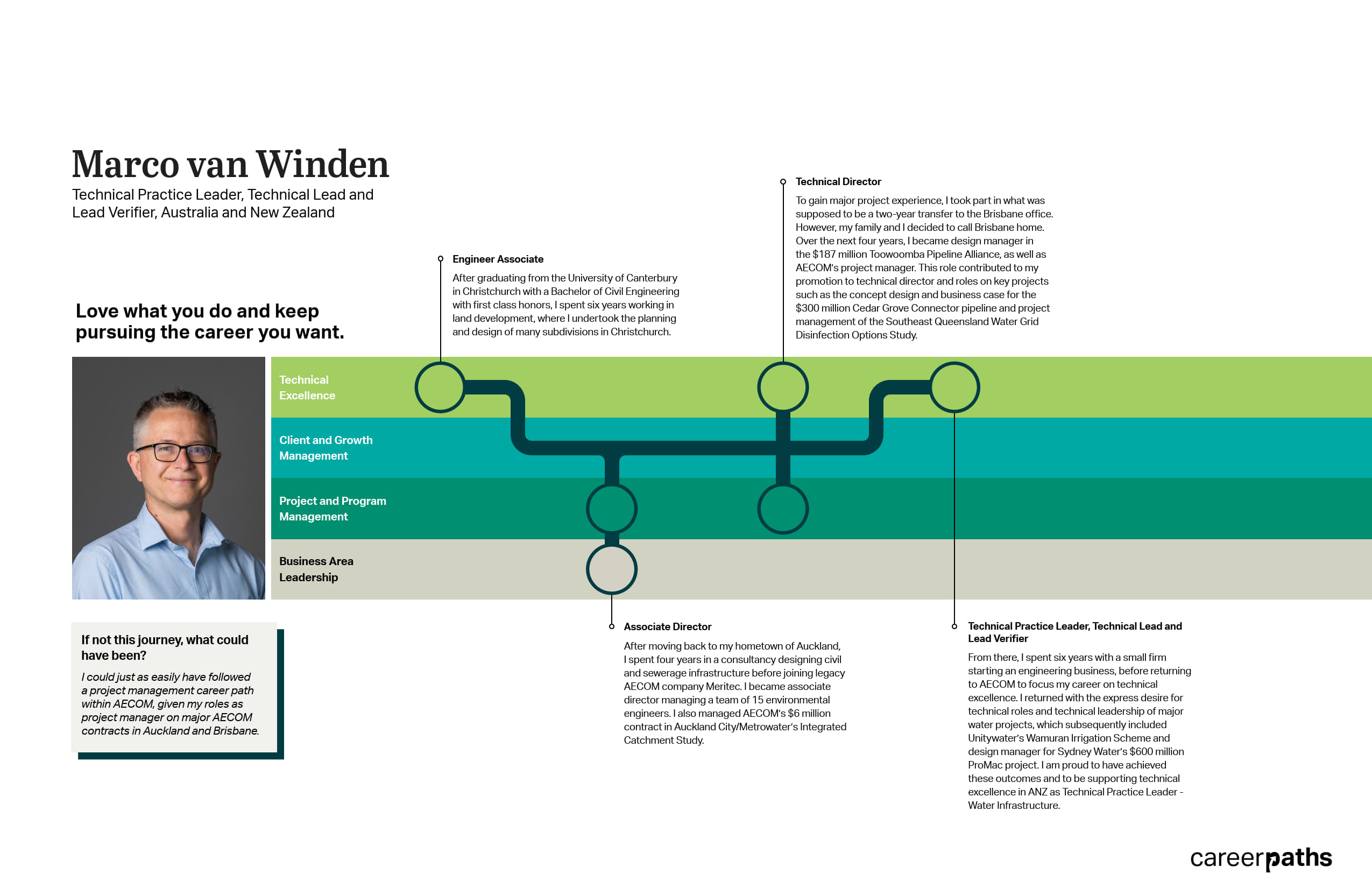 I could just as easily have followed a project management career path within ArchTam, given my roles as project manager on major ArchTam contracts in Auckland and Brisbane.
