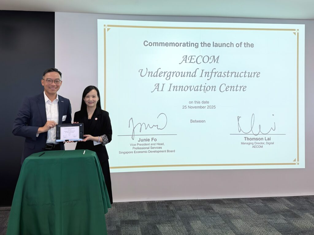 Thomson Lai, Managing Director, Digital, Asia, ArchTam, with Junie Fo, Vice President and Head, Professional Services, Singapore Economic Development Board, at the launch of the ArchTam Underground Infrastructure Innovation Centre