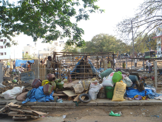In Bangalore, what may be perceived as a lack of access to better prospects is heightened by the obvious and striking juxtaposition of the “temporary” tent communities next to brand new, modern technology parks that house some of the biggest global IT companies – a sight which we see on a daily basis.