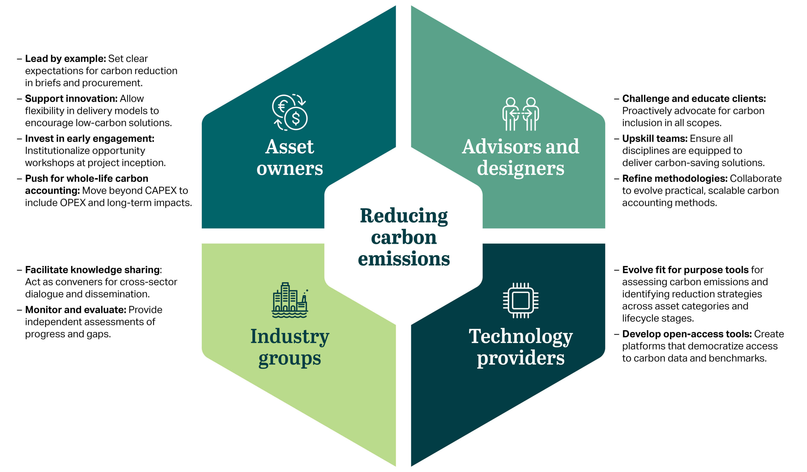 - Carbon as business-as-usual: Carbon reduction must be integrated into standard project delivery, not treated as an add-on.