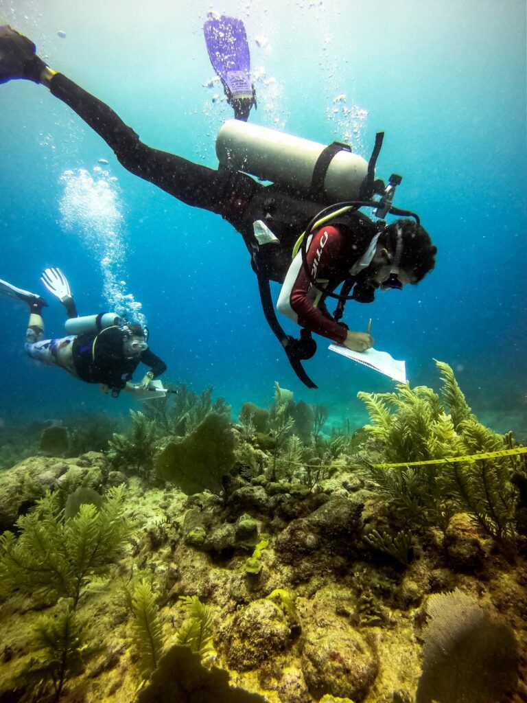 While working on my master’s thesis, I was involved with a non-government organization (NGO) in Akumal, which is in the Mexican Caribbean in the Yucatán Peninsula — very close to Cancún. When I started with ArchTam, I reconnected with the NGO to propose working together on ecosystem conservation and restoration. This led to volunteer work for coral reef restoration in Akumal, restoring two coral species, cleaning out-planted coral fragments and monitoring the reef to better understand reef health indicators, such as diseases and invasive species.