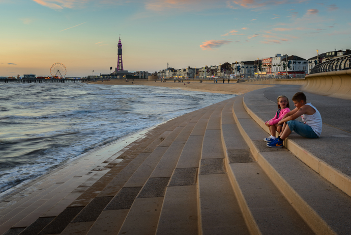 This designed environment along the waterfront at Blackpool, UK, welcomes people directly to the beach for the first time in over a century while using dune-shaped forms to protect the city from rising tides.Â
