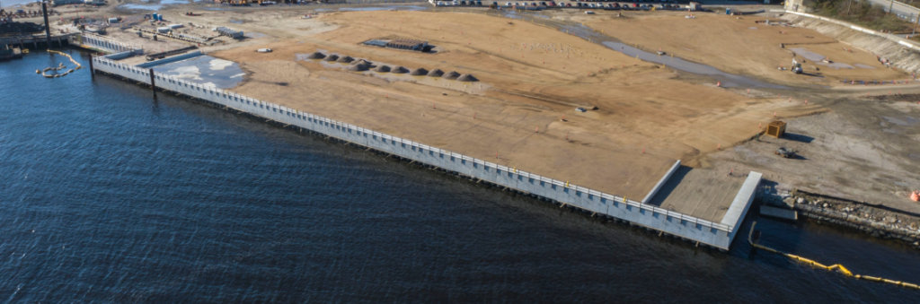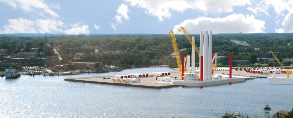 Its resilient, two-berth design and shore-to-ship power addresses carbon reduction. Enhanced berth-pocket capability with adjacent heavy-lift platform accommodates wind-turbine installation vessels like the U.S. Charybdis. Offshore wind projects totaling over 1,700 megawatts commence in spring 2023.
