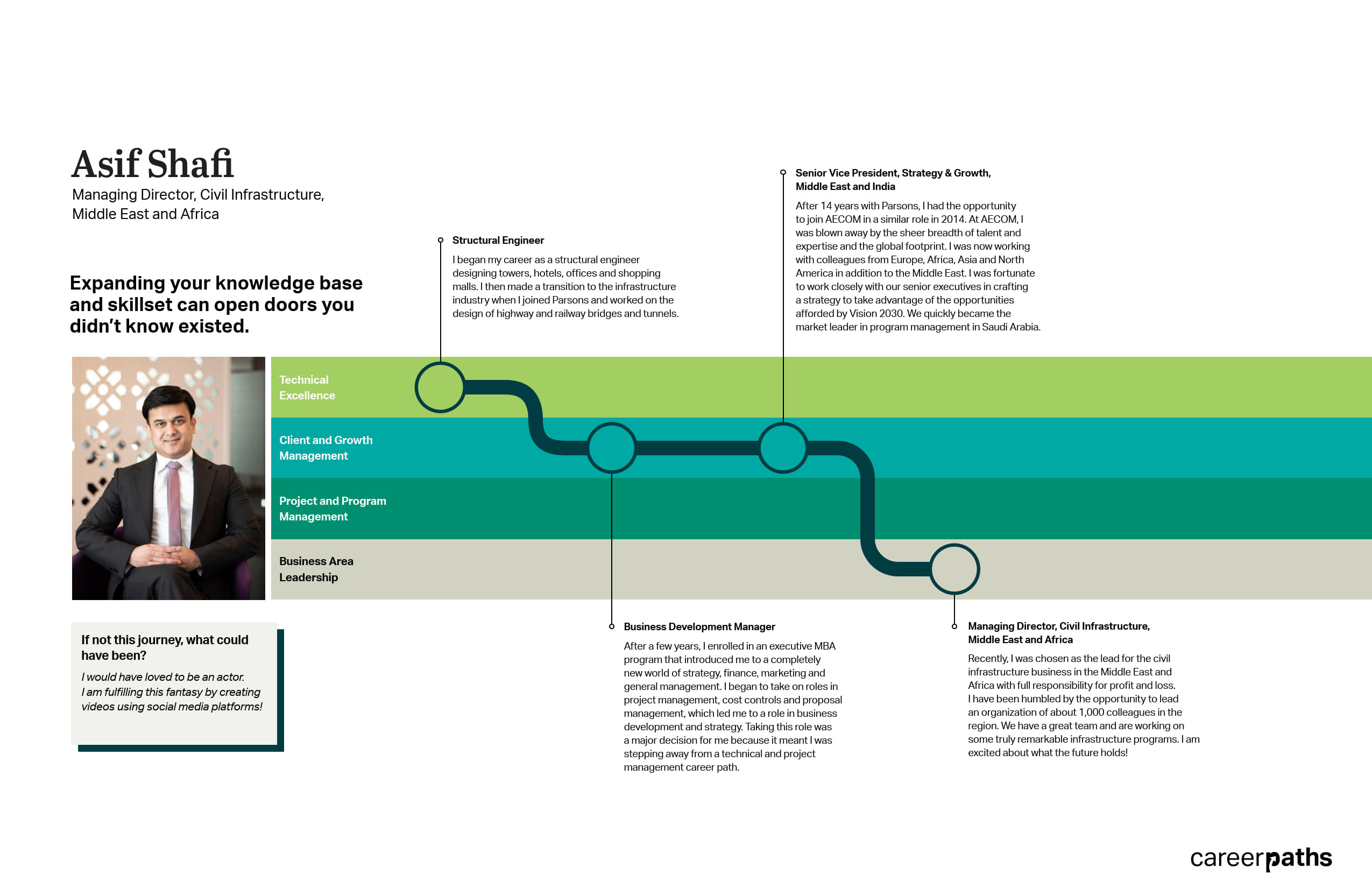 This time, we caught up with Asif Shafi, managing director for civil infrastructure in the Middle East and Africa, to discover how he chose the path he’s on today.
