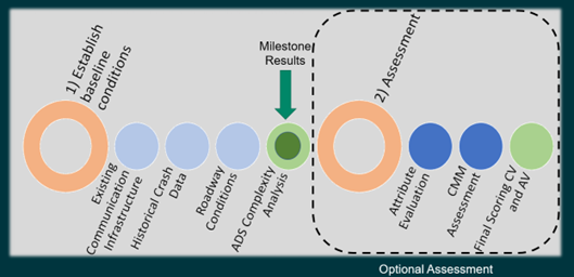 The secondary, optional assessment is higher level. It evaluates the roadway as a whole, identifying attributes that help or hinder deployment. These attributes, however, are not tied to a specific location. Rather, they inform the automation process itself, and help optimize vehicle behavior.