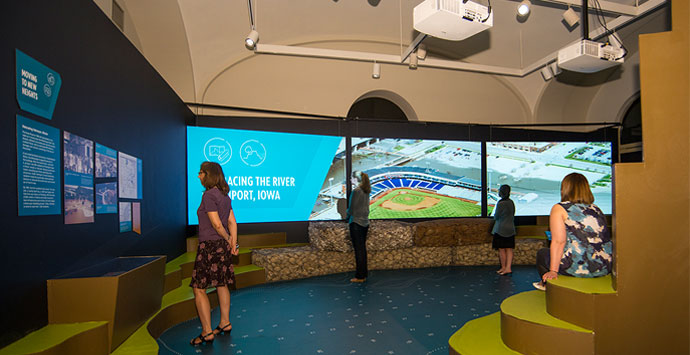 To help educate and keep visitors engaged in this challenging subject, we developed a series of iPad-based quizzes and included some fun, hands-on interactives — the most popular is modeled on the International Hurricane Research Center’s Wall of Wind at Florida International University (as pictured in the main image).