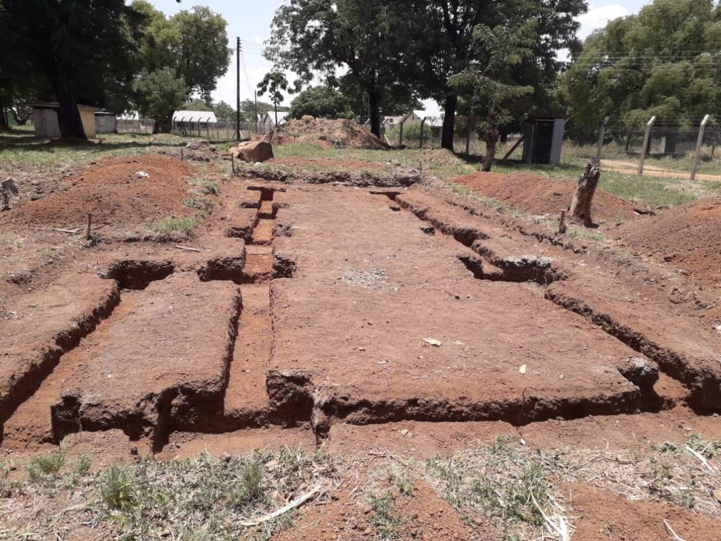 The Eco-San toilets building is being built in a sunny spot of the hospital fields, to help towards the dehydration process, with good access and close to the main yards with a footprint of around 13m by 6m.