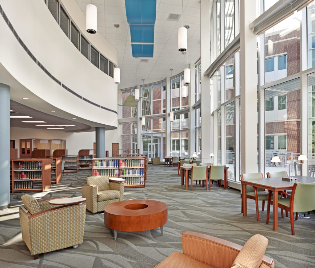 While working at ArchTam here in Roanoke, Virginia, I have been fortunate to be the lead architect on the Riverside Center, now referred to as the Virginia Tech Carilion Health Sciences and Technology Campus (Campus and Facilities | Fralin Biomedical Research Institute at VTC | Virginia Tech). ArchTam had just completed the master plan for this campus when I first joined in 2004. I was able to work with the client on developing the design for a 100,000-square-foot medical office building that also includes a range of higher education and research spaces, a 220,000-square-foot outpatient medical facility that is part of the emerging academic medical center and includes resident space and conference areas, the new 154,000-square-foot Virginia Tech Carilion (VTC) School of Medicine and Research Institute, a four-year medical school, and recently, the new VTC Fralin Biomedical Research Institute that includes higher education spaces, research areas and clinical services related to veterinary care and translational medical research.