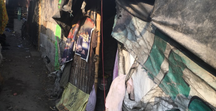 Today was my first visit out into the field to meet families living in the slum communities. The slum housing here is made from a mixture of bamboo, tarps, asbestos sheeting, bricks and tiles (example of a typical house shown below). People build these houses on land they find available; sometimes government land or unused private land. They use water from valves on the street. The families I met today have lived in this type of housing community for 30-40 years — spanning three generations. It’s a hard way to live without access to amenities we take for granted in our households.