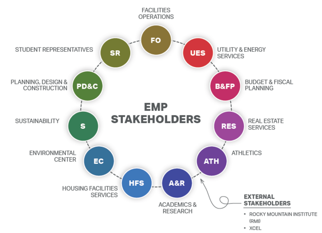 An EMP can be difficult to execute because it is typically a siloed, facilities-led effort. In the case of CU Boulder, we developed a strategy to solicit input from myriad stakeholders across the campus ecosystem. Our multifaceted outreach drew from areas as diverse as finance and athletics, and also sought broad input from the student body.